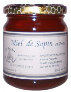 Le miel de sapin, en réalité le miellat de sapin, est un miel de couleur foncée quasiment noir. Son goût est fortement balsamique et malté, et également parfois mentholé.